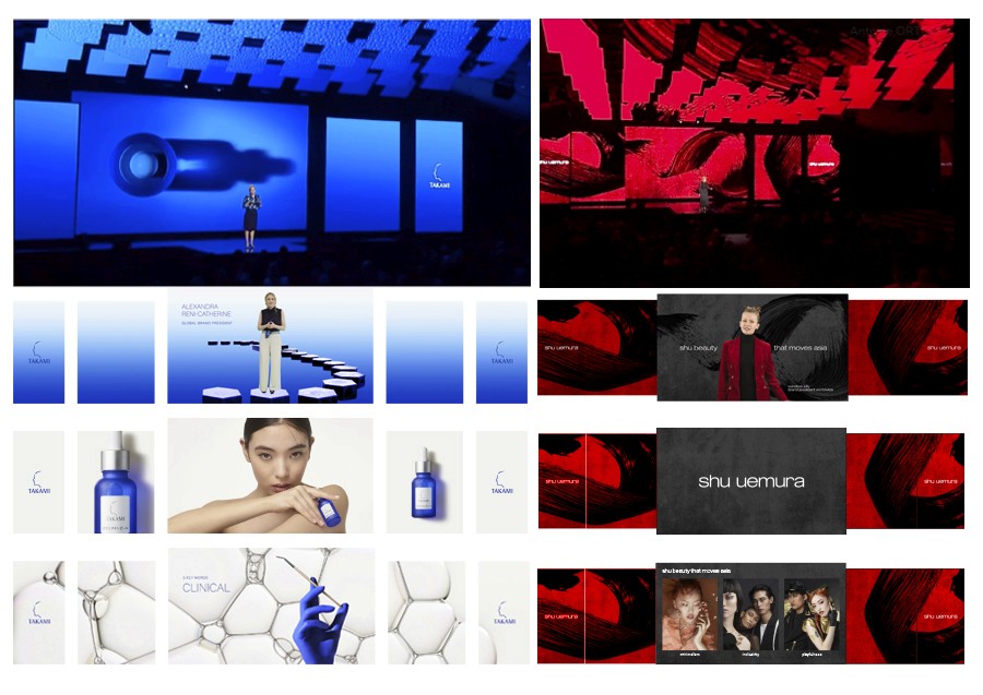 Création de ppts de présentation pour les plénières au musée du Louvre de 2 marques de cosmétique japonaise du groupe L'Oréal Luxe : Shu Uemura & Takami.